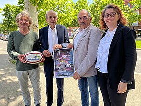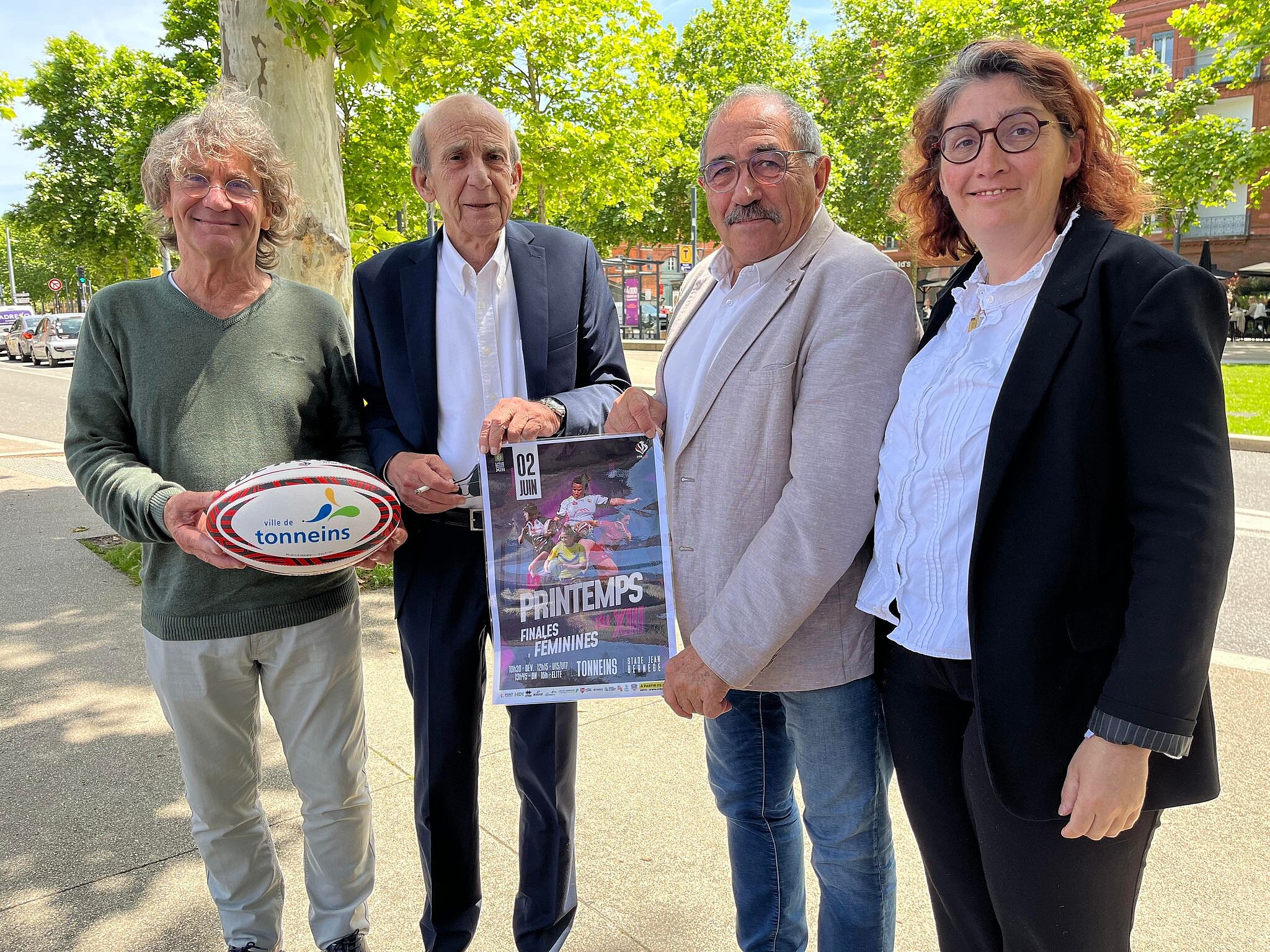 Le président de la Fédération Française de Rugby à XIII Dominique Baloup et le secrétaire général Jean-Pierre Morata se sont entretenus aujourd'hui à Toulouse avec le maire de Tonneins Dante Rinaudo et son adjointe déléguée au Sport Céline Boussié pour préparer les finales nationales féminines du 2 juin à Tonneins.