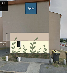 Dans un second temps, après nettoyage des lieux, il est prévu de réaliser une fresque sur l'intégralité de la longueur de la façade sur une hauteur de 3mètres. Cette fresque sera réalisée par des jeunes de Tonneins accompagnés par les Compagnons Bâtisseurs spécialisés en peinture du bâtiment, et nos collègues de l'Info Jeunes, Charline et Manon. Le fond sera beige et blanc cassé avec des motifs de végétation verts clairs.
