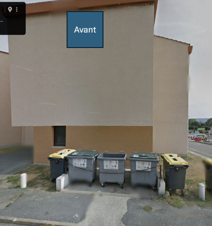Dans un premier temps, tous les containers poubelles se trouvant à l’extérieur de la résidence des Hêtres vont être déplacés dans un local à l’intérieur de la résidence. L’habillage en bois de la façade sera retiré puis traité et repeint pour réemploi.